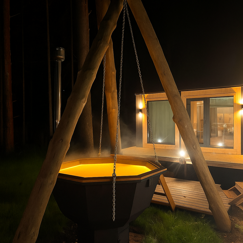 Сибирский чан — это традиционная русская баня, выполненная в виде деревянной бочки, которая идеально подходит для отдыха и релаксации на природе. Он установлен на свежем воздухе и наполняется горячей водой, создавая уютную атмосферу для гостей нашего глэмпинга. В чане можно наслаждаться купанием под открытым небом в окружении живописных пейзажей, что делает этот опыт особенно запоминающимся. Чан оборудован печью, которая поддерживает необходимую температуру воды, а также может быть дополнен ароматическими маслами или травами для создания расслабляющего эффекта. Это отличное место для общения с друзьями или романтического вечера на природе.